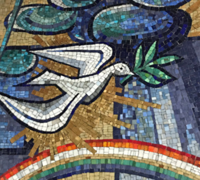 Vorheriges Bild Nächstes Bild Bethlehemkirche_Taube Detail aus dem Mosaik in der Bethlehemkirche: Taube mit Ölzweig Detail aus dem Mosaik in der Bethlehemkirche: Taube mit Ölzweig